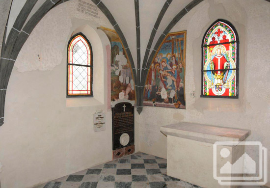 Le pitture erano state ricoperte da vari strati di calce e risultavano solo parzialmente visibili. Lo scoprimento è stato effettuato meccanicamente con scalpello e gomma di fibra ottiche. Il riempimento delle parti mancanti con intonaco a calce. Dopodiché le parti mancanti sono state tinteggiate ad acquerello.